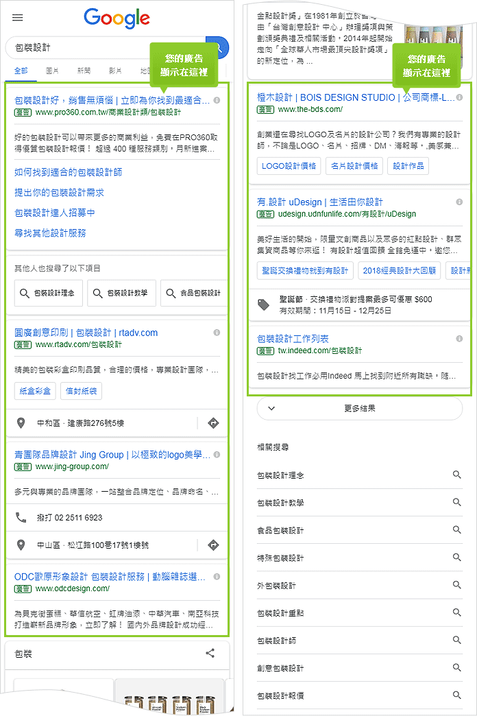 智慧型手機搜尋結果頁 ( 可設定電話直接撥打 )